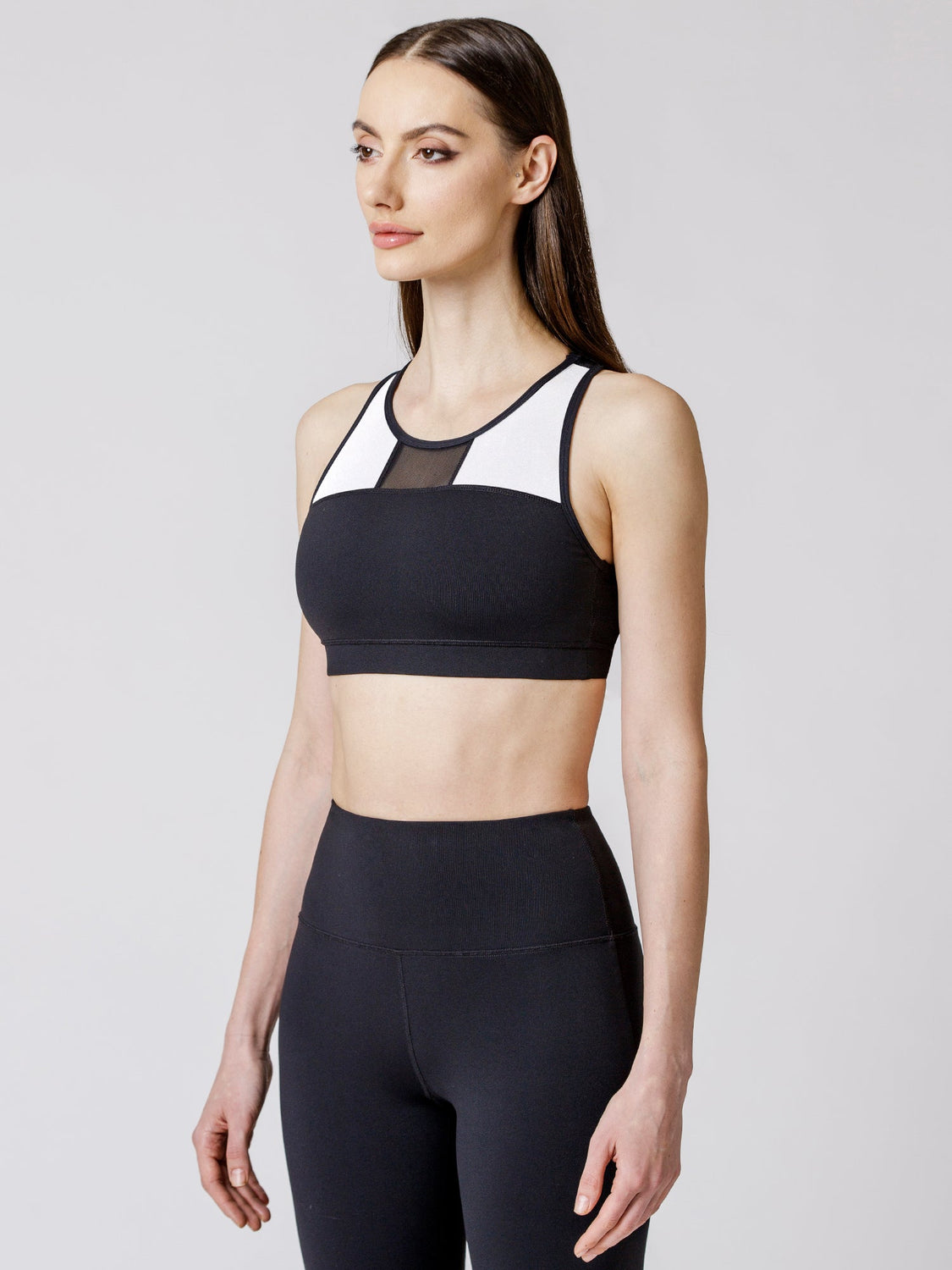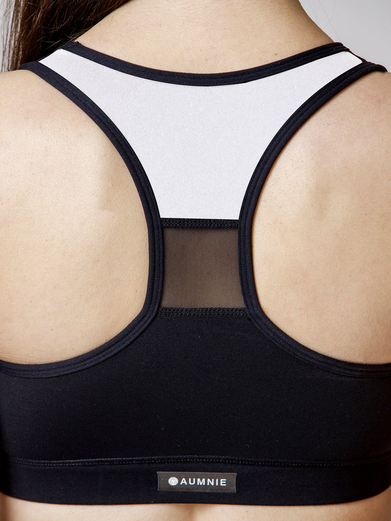 ABSTRACT BRA, BLACK/WHITE/BLACK MESH