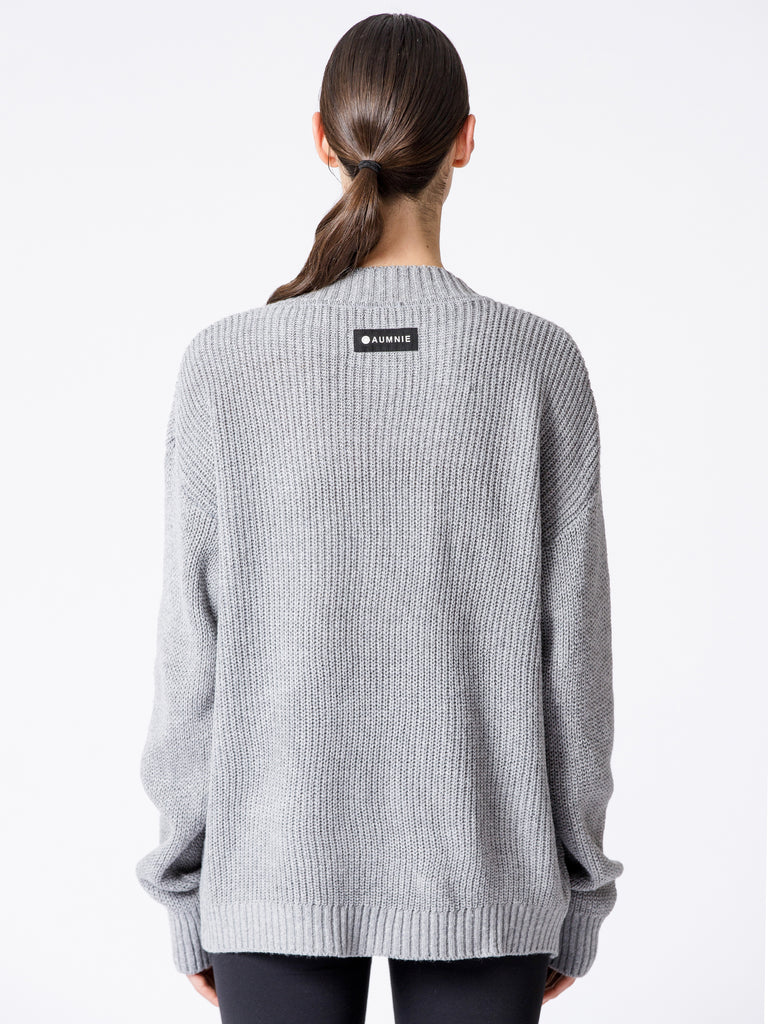 BOYFRIEND FIT KNIT CARDIGAN, LIGHT GREY